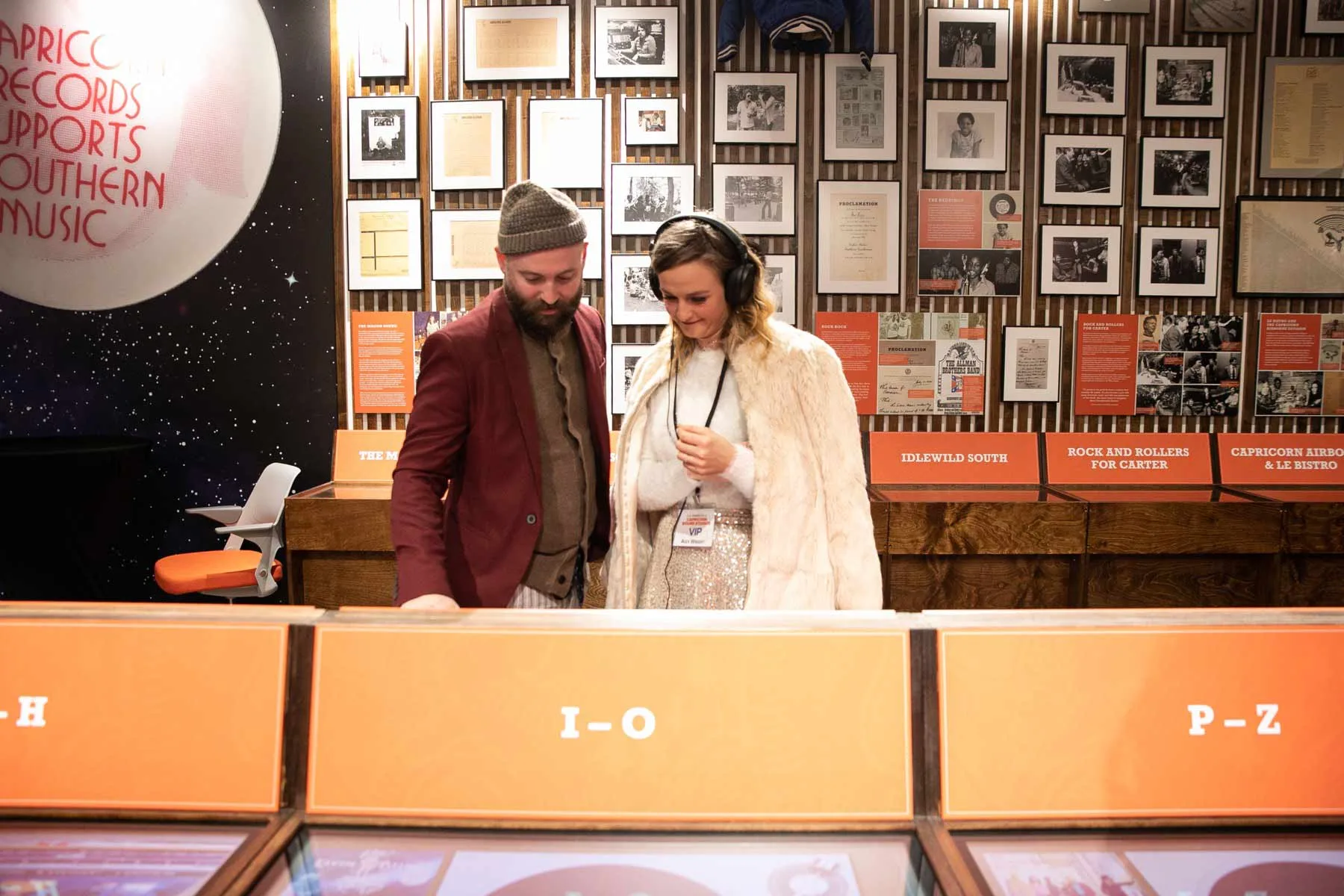 Visitors can flip through albums in interactive bins, cue music to play in the museum or on headphones, and engage with interactive record players that let them create their own personalized musical experience. The space features photographs, album art, posters, large-scale murals, and dimensional letters that evoke the energy and nostalgia of a favorite record store. A dedicated photo backdrop encourages social sharing and extends the experience online.